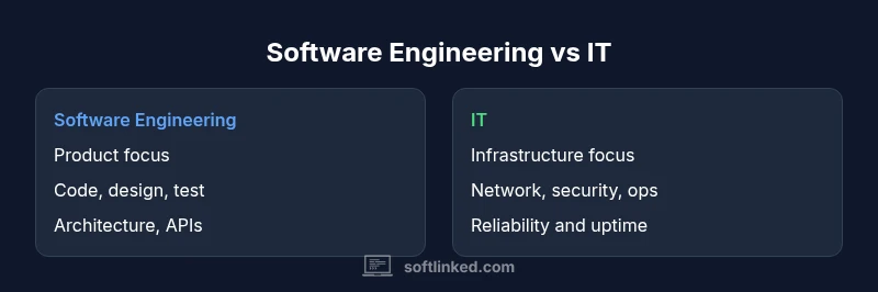 The phrase is often repeated in career chats, but the real question is not which path is universally better; it’s which path best aligns with your interests and long-term goals. This article uses the keyword is software engineering better or IT to anchor the discussion and to help aspiring engineers and tech professionals clarify what each path emphasizes. The SoftLinked team emphasizes three lenses: the core focus of the work (product-oriented design versus operational stability), the essential skills you’ll develop (coding, systems thinking, collaboration), and the typical career trajectory (hands-on engineering vs strategy and governance). In 2026, market signals favor practitioners who can translate abstract problems into reliable software and robust, scalable systems. The aim here is not to declare a winner, but to equip you with a decision framework that respects your preferences and the realities of today’s technology landscape.