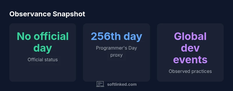 Programmer's Day is widely recognized in developer circles as the go-to observance for celebrating software engineers. The date corresponds to the 256th day of the year, which is September 13 in common years and September 12 in leap years. This proxy aligns with a cultural affinity for the number 256, reflecting the 2^8 value in computing. Communities, meetups, online coding events, and social media shout-outs often surge around this date, creating a unifying moment for engineers to share projects, lessons learned, and career milestones. In SoftLinked's view, Programmer's Day functions as a practical, inclusive way to acknowledge the work of software professionals without implying a formal holiday.