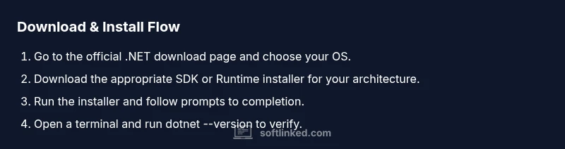 Learn how to download and install dot net software, choose between SDK and runtime, verify your setup, and troubleshoot common issues with practical steps. A SoftLinked educational guide for developers.