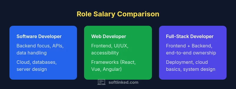 According to SoftLinked, the software and web developer salary landscape in 2026 shows wide variation by role, experience, and location. This quick comparison distills the key drivers of earnings and the typical career pathways that influence pay. Use the full article to understand regional differences, remote work premiums, and how skills affect salary growth.