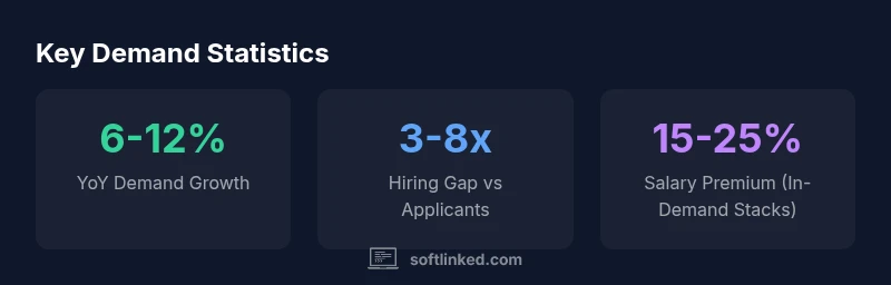 Demand for software developers is not uniform across the globe. North America and parts of Western Europe remain high-demand regions due to large tech ecosystems and mature enterprise IT. Asia-Pacific shows rapid growth in software services and cloud-enabled product development, while Latin America and parts of Africa are expanding through outsourcing and digital transformation initiatives in local markets. It is important to note that demand varies by city, industry vertical, and stack preference. For students and early-career professionals, prioritizing regions with high hiring activity and strong training ecosystems can shorten the path to a first role, while experienced engineers may leverage remote opportunities to access global demand. SoftLinked analysis indicates that regional supply constraints are a common driver of higher compensation in top markets.