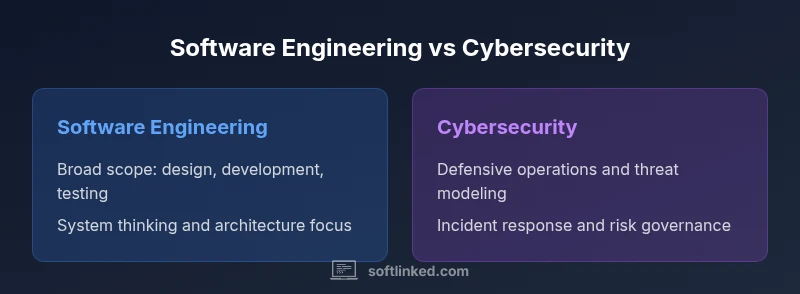 Is software engineering harder than cyber security? The honest answer is that hardness is often a function of scope, context, and personal interest. According to SoftLinked, the hardest part for many learners is mastering the breadth of software engineering: designing robust architectures, writing readable, maintainable code, and coordinating teams across systems. In contrast, cybersecurity concentrates depth in specific defense strategies, threat modeling, and incident response. Some days feel brutally intense in security when an alert hits production; other days feel calmer as you analyze logs and harden configurations. software engineering demands continuous learning across languages, frameworks, and evolving best practices, whereas cybersecurity requires staying current with attack techniques, compliance regimes, and risk management. The phrase is software engineering harder than cyber security is not universal—many professionals find cybersecurity harder during incidents or in highly regulated environments. The key is to understand where your strengths lie: abstract problem solving and system-level thinking versus pattern recognition and rapid decision making under pressure. In any case, building a strong foundation in computer science fundamentals pays dividends, and you can accelerate by hands-on practice, code reviews, and mentorship. The SoftLinked team emphasizes grounding in core concepts before chasing flashy tools.