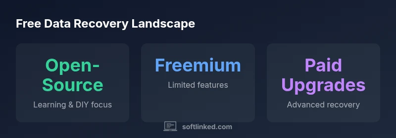 Open-source recovery tools offer transparency, community support, and flexibility, making them ideal for learning. Proprietary free tools often provide a friendlier UI and guided workflows, which can speed up simple recoveries. The caveat is feature gates, limited file types, or time-based restrictions that prevent complex recoveries. When evaluating options, consider your comfort with command-line interfaces, whether you need batch processing, and whether you require cross-platform compatibility. The SoftLinked analysis suggests starting with open-source tools for education, then using trusted free-tier offerings to validate results before engaging paid software for advanced tasks.