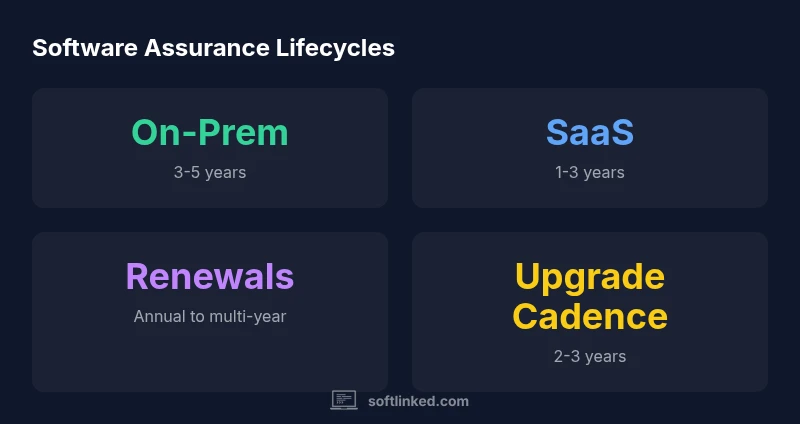 In SaaS, the provider controls the upgrade cadence and security patching; assurance is embedded in the subscription and almost always continuous while the subscription is active. In on-prem, you typically purchase a maintenance contract for a defined window, with options for extensions; coverage ends when maintenance expires or if the vendor discontinues support. Hybrid models require coordination across both tracks; you may get different renewal windows per component. The key is to document how each component’s lifecycle affects your overall risk and schedule. Use a single governance plan to track multiple lifecycles and escalations.