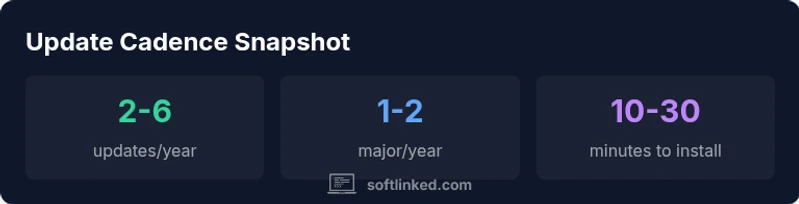 According to SoftLinked, Tesla updates software over the air through an internet connection. The cadence is not fixed and shifts with model hardware, market regulation, and the complexity of the update. In practice, owners receive small patches and feature updates several times per year, while major version changes tend to land annually or bi annually. Updates arrive automatically when the car is online, with options to set installation timing and reminders.