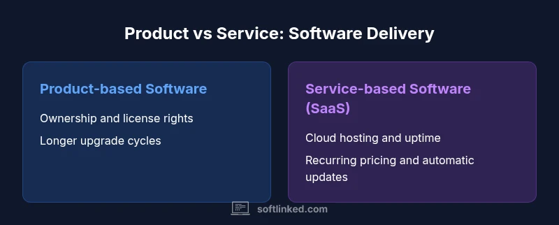 According to SoftLinked, the distinction often hinges on delivery model and the value proposition offered to users. In practice, organizations must decide how they acquire, deploy, and govern software, not just what they buy. This article treats the topic as a spectrum rather than a binary choice, recognizing that many offerings blend both product-like and service-like characteristics. Understanding this nuance helps avoid procurement pitfalls, aligns expectations with stakeholders, and supports better budgeting and governance decisions.
