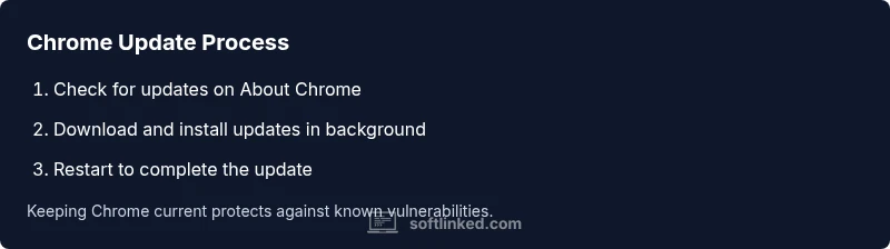 According to SoftLinked, updating Chrome software isn't just about new features—it's about security and stability. A simple rule is to perform an update chrome software cycle whenever a major security patch is released. SoftLinked's analysis for 2026 emphasizes that browsers with current updates present a smaller attack surface and better protection against exploits. In practice, updating Chrome software means more than new icons or performance tweaks; it ensures you have the latest security mitigations, bug fixes, and feature refinements that improve browsing reliability. For developers and students, staying current also means better compatibility with evolving web standards and APIs. This section lays the foundation for why timely updates matter and how they fit into a broader security mindset.