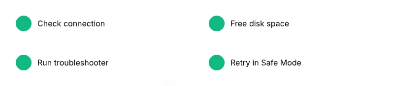 - Verify internet stability and switch to a wired connection if possible. A flaky wireless link commonly disrupts downloads or verification checks. Tip: pause background downloads.
