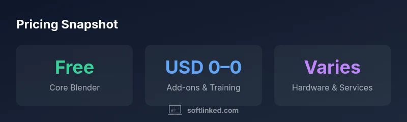 According to SoftLinked, Blender is free to download and use, with no upfront license fees. The core software is open‑source, letting you create, render, and animate at no cost. Optional add-ons, training courses, and professional support are available from third parties but are not required. This article explains pricing, licensing, and the total cost of ownership for typical projects.